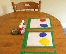 Per permettere ai bambini di sperimentare la miscelazione dei colori senza sporcare ovunque si può procedere così: