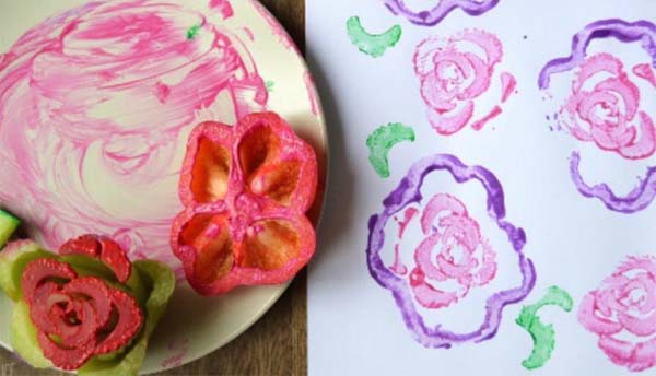 A questo punto, il bambino potrà utilizzare questi timbrini fatti in casa per fare una pittura creativa, originale e divertente. Scoprendo le forme che producono i vari frutti e utilizzando diversi colori, dando libero sfogo alla sua fantasia.