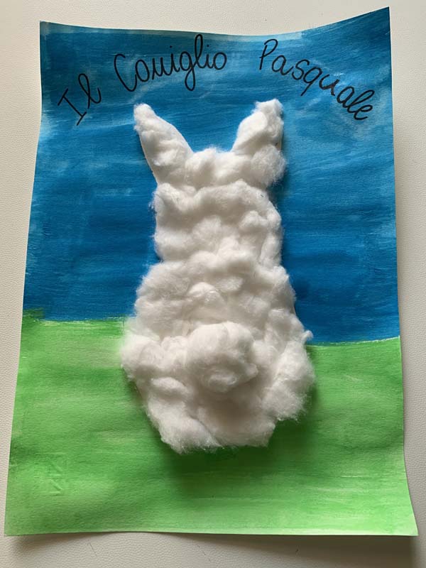 Alla fine possiamo scrivere un pensiero per la pasqua, il titolo dell’attività oppure semplicemente il nome del nostro bambino e la data.