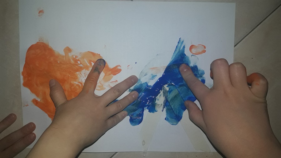 A questo punto il bambino potrà disegnare usando le manine e le dita.