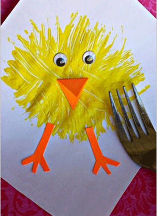 L’attività proposta permette ai bambini di utilizzare una tecnica grafica diversa dalle altre. Attraverso l’uso di una forchetta (strumento che normalmente loro usano per mangiare) potranno realizzare una rappresentazione grafica di un pulcino, animale accostato spesso al periodo della pasqua.
